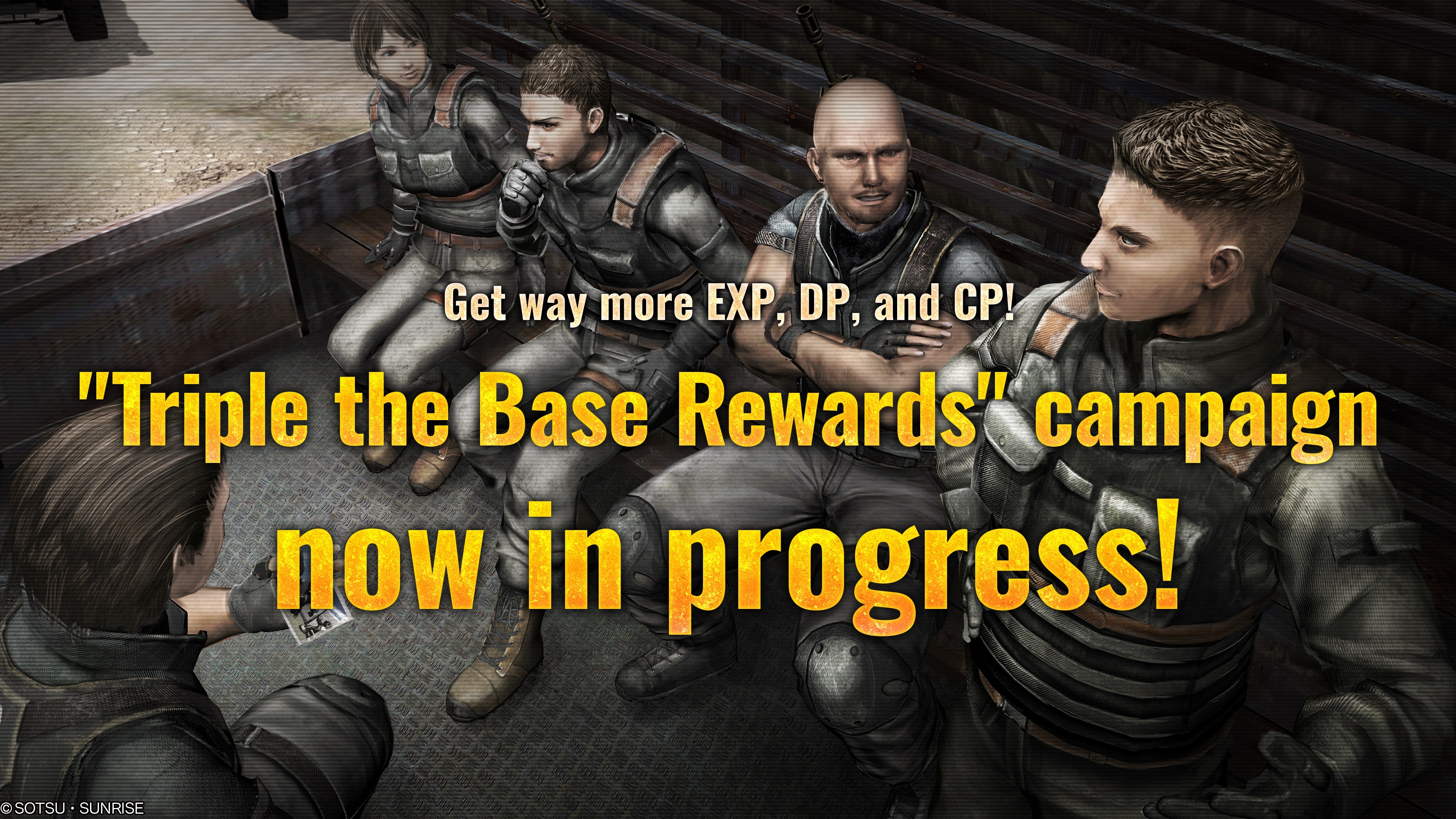 ■Content We have a special mission for all pilots during the period. You will have a chance to gain unit’s patterns, Modification kits, Mechanic tickets and DP for rewards while completing the special missions during the campaign.