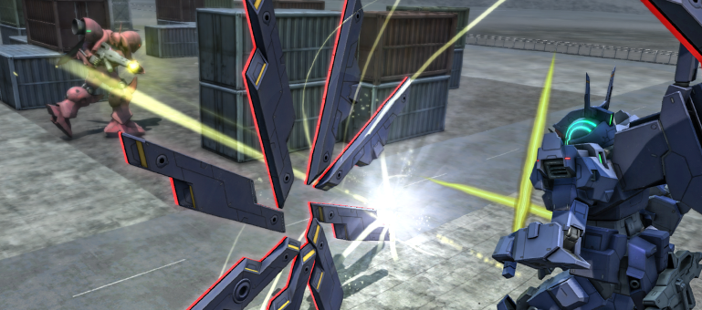 Skill “Psycho Neutralizer” ・Activates under 30% HP, ・Boosts the mobility and the attack power. ・Reduces damage taken to unit HP. ・Extends lock-on time by enemy’s Psycommu weapon. ・Reduces ranged weapon reload and overheat recovery time. ・Nullifies all reactions except for stagger due to cumulative damage, ONLY at the point of skill activation.
