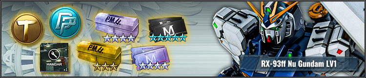 ■Other materials ⇒ Information about newly added materials ■Unit ・★★★ NT-X LV2 (Support unit, ground/space uses, cost: 550) ・★★★ Ex-S Gundam LV3 (General unit, ground/space uses, cost: 750) ・★★★ Gundam Mk-V LV3 (Raid unit, ground/space uses, cost: 750) ・★★ FAZZ LV4 (Support unit, ground/space uses, cost: 750) ・★★ Zeta Plus C1 LV4 (Support unit, ground/space uses, cost: 750) ※All ★★★ units are eligible for the Monthly MS Bonus Unit.