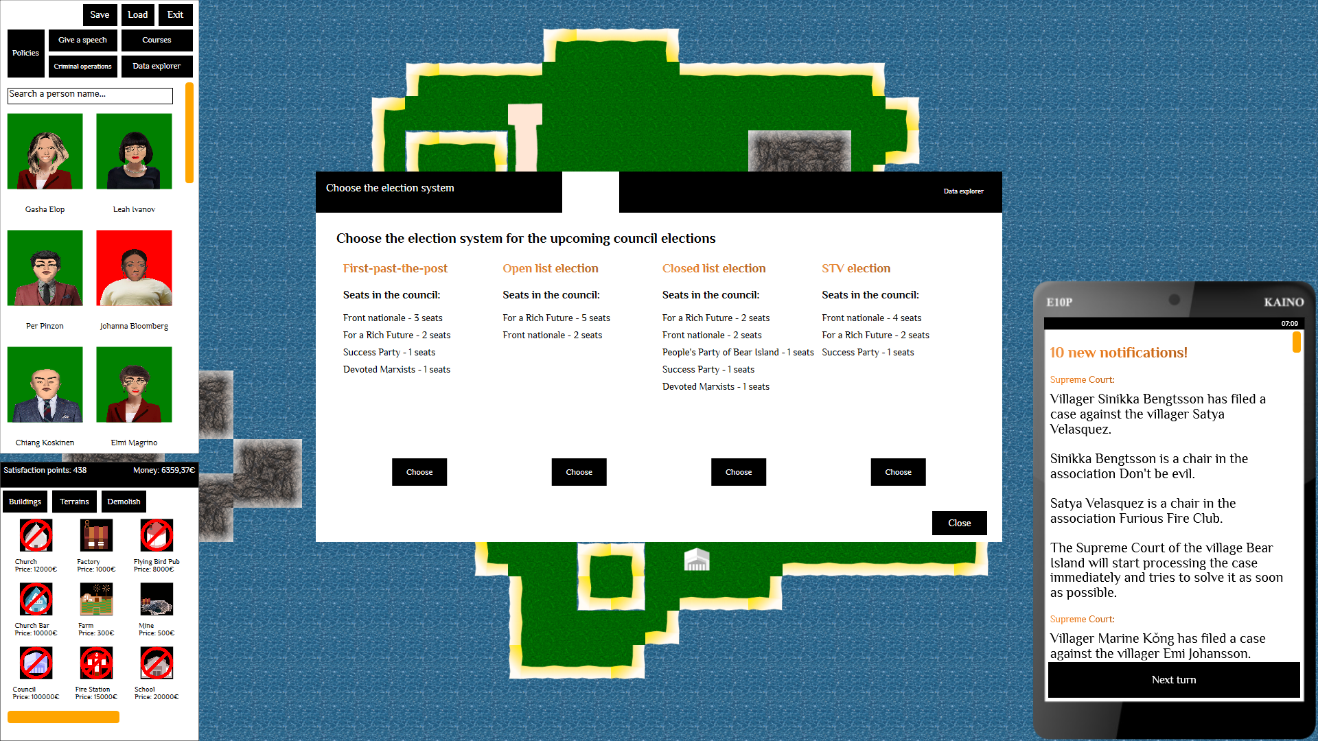 When still working on a larger update that comes with many new amazing tools for election campaigning, including election districts and gerrymandering, we wanted to add the game already one new feature that was originally developed for the larger update. That feature is a whole-new election system, namely the first-past-the-post!