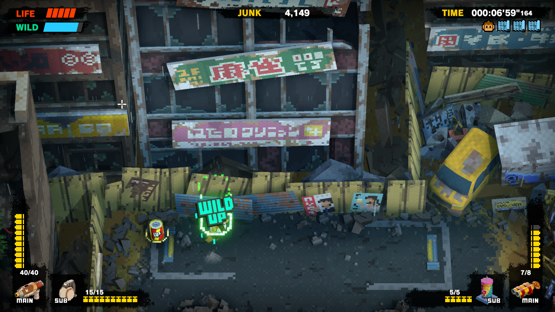WILD POWER mode causes an explosion that wipes out nearby enemies and projectiles. After that, you’ll have increased attack power and unlimited ammo for your main weapons—with no reloading required!—until the WP gauge runs out.