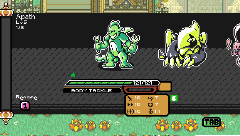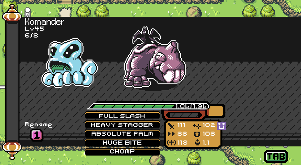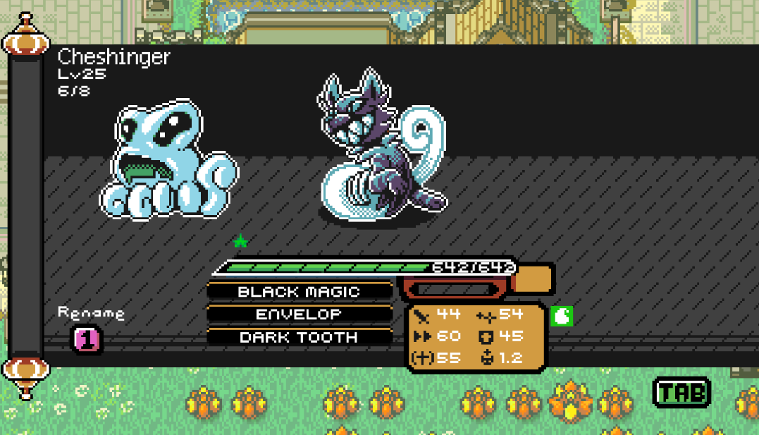 0.1.856 ===== +Three new tamer palette choices added, the last one in the list was designed by Sean Chiplock!!! +Scout system now works in card dungeons +Monster info preview no longer fails to update when moving monsters within the same box +Monster box now more reliable when moving around a lot of monsters +Old Meerlin man sprite and house sprite updates +Tarasque Overworld facing-up sprite animation fix +Issue with displaying the attack info of the monster's first move in the box preview fixed +Blank text box when checking malcious monsters fixed +Clock visual fix +Attacks in the party menu while playing with language set to Arabic fixed +Issue that could arise when the time of day phase changed mid Jasper cutscene addressed.