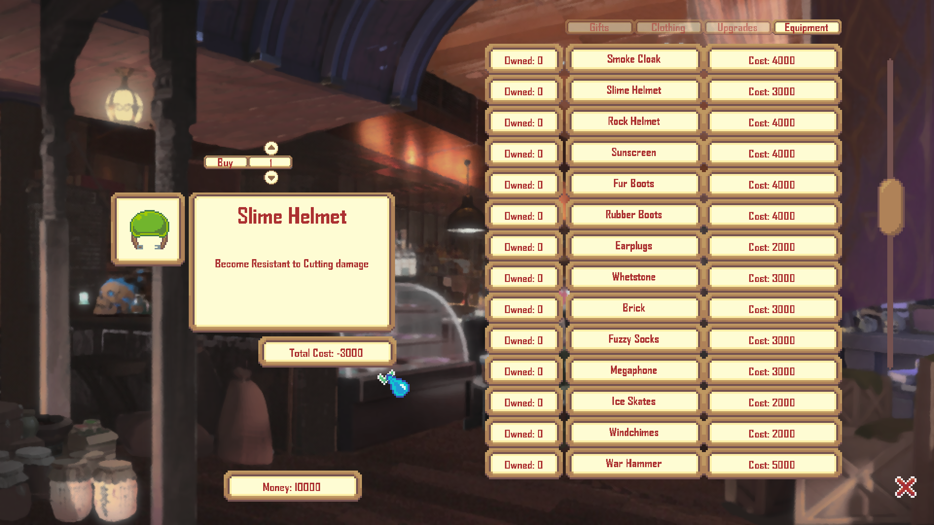 Remove confusion regarding the take-home chest and equipped artifacts: The take-home chest has been entirely scrapped. Instead, all artifacts your team collects will be sold when you leave a dungeon. You can no longer equip artifacts in the dungeon prep screen. Instead, you can equip "Equipment". Equipment has strong non-stacking effects and can be purchased in the store instead of artifacts. To help further separate equipment and artifacts, it will be displayed separately in the dungeon In the future I plan to have players find equipment in the dungeons or possibly craft them in town. For now, all the new equipment can be purchased and sold in the shop.