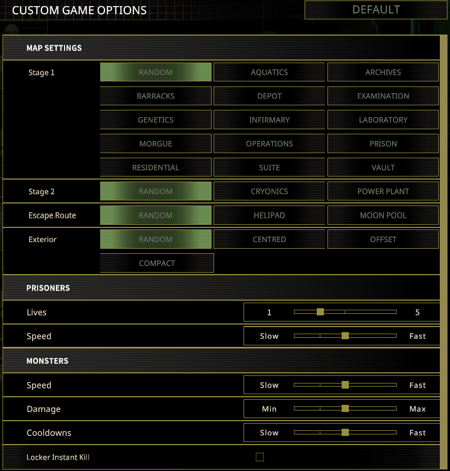 New options have been added to the Custom Games menu: