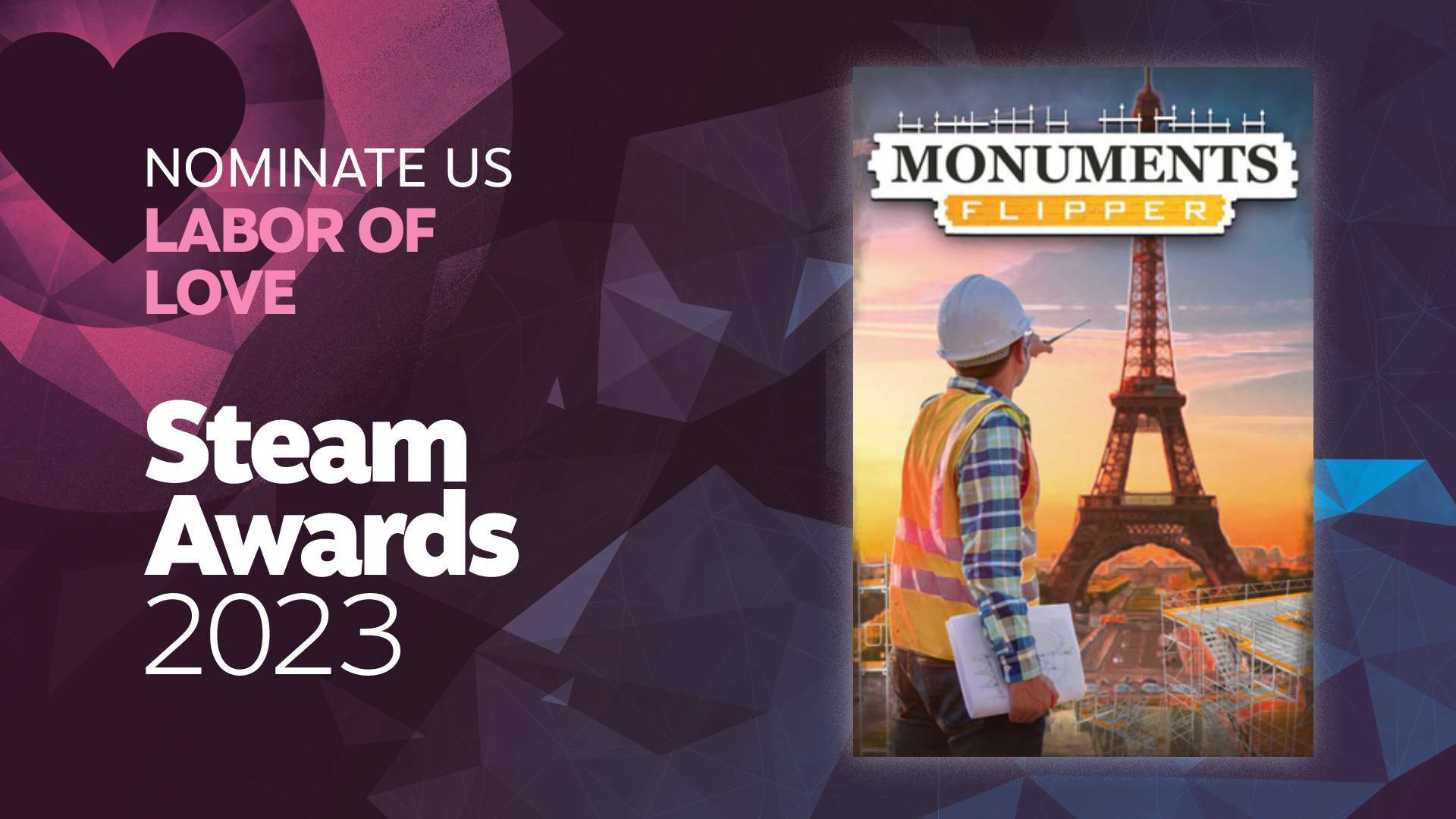 We are pleased to announce that Monuments Flipper is included in this year's Steam Awards and is nominated in the "Labor of Love" category! 🥳