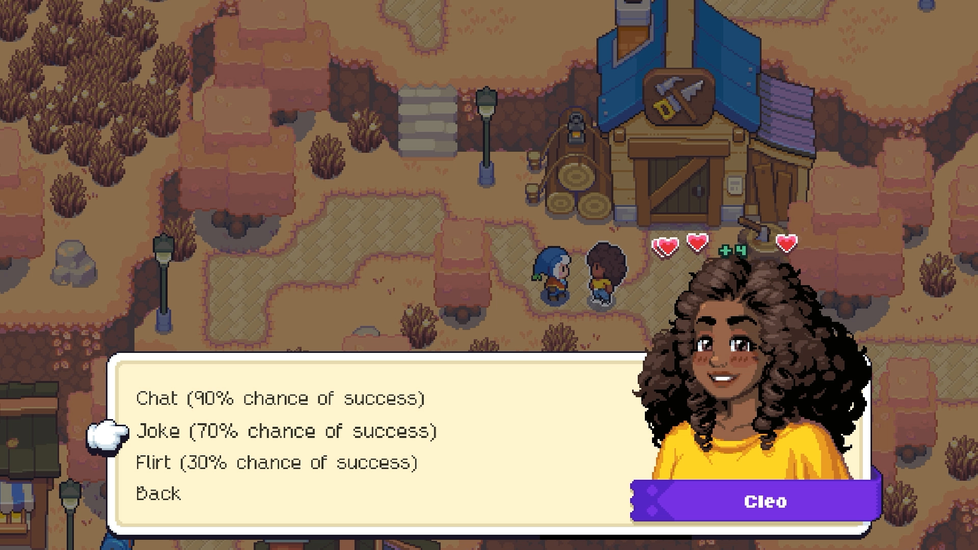 For example, if you date our resident historian, Cleo, you'll get some deep insight into the lore of the game as you get to know her better, but if you date our resident grumpy-boots, Gaiana, you'll instead get a story about how someone can put up walls to protect their feelings, and how love can help them learn to trust again. Tobin the fisherman has a sad story about moving on after loss. Quill the artist will teach you not to judge a book by its cover. And Ofelia and Paolo will reveal a secret-that's-not-that-secret about the background of Moonstone Island's citizens!