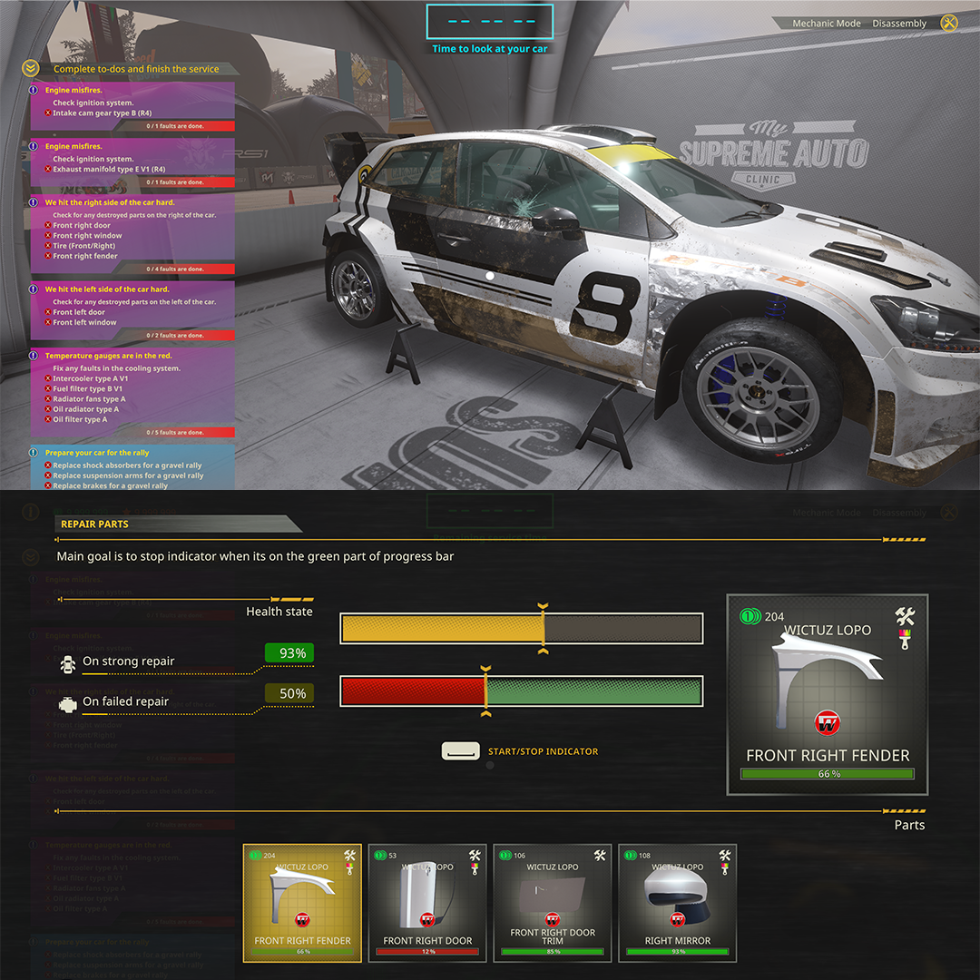 🔧 Realistic Repairs Step into the role of a rally mechanic, where you’ll diagnose and fix a wide variety of car issues. From damaged suspensions to overheating engines, every repair mirrors the real-life challenges faced by rally teams.