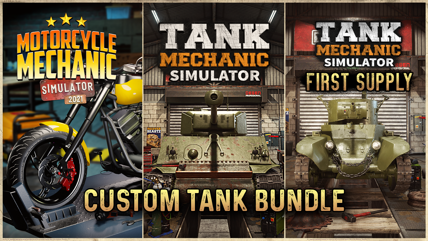 With the release of their DLC - Tank Mechanic Simulator - First Supply, we are announcing that we have created a joint bundle! Grab the bundle and get those games with a -10% discount! What's more, if you get the bundle by 18.02, the discounts will add up and you'll grab the games at an even better price!