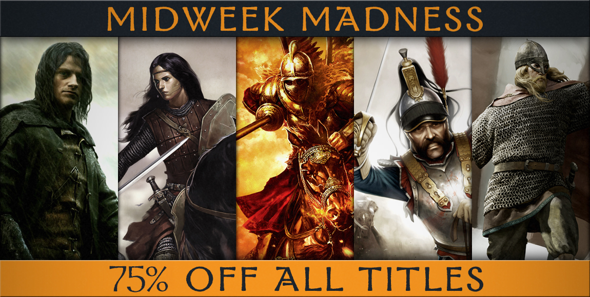 Don't miss your chance to complete your Mount & Blade collection during the midweek madness sale with 75% off individual titles and 80% off the full collection pack and all Mount & Blade: Warband DLC!