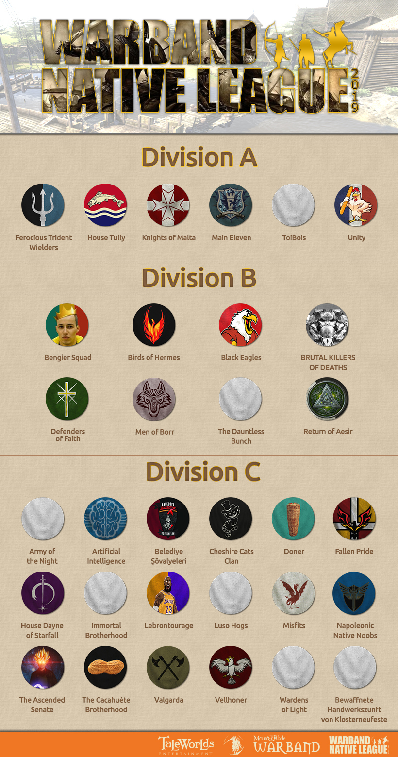 Signups for the 7th edition of the Warband Native League have drawn to a close. This is shaping up to be a huge tournament, with 32 teams consisting of 457 players taking part! We wish everyone taking part the best of luck!