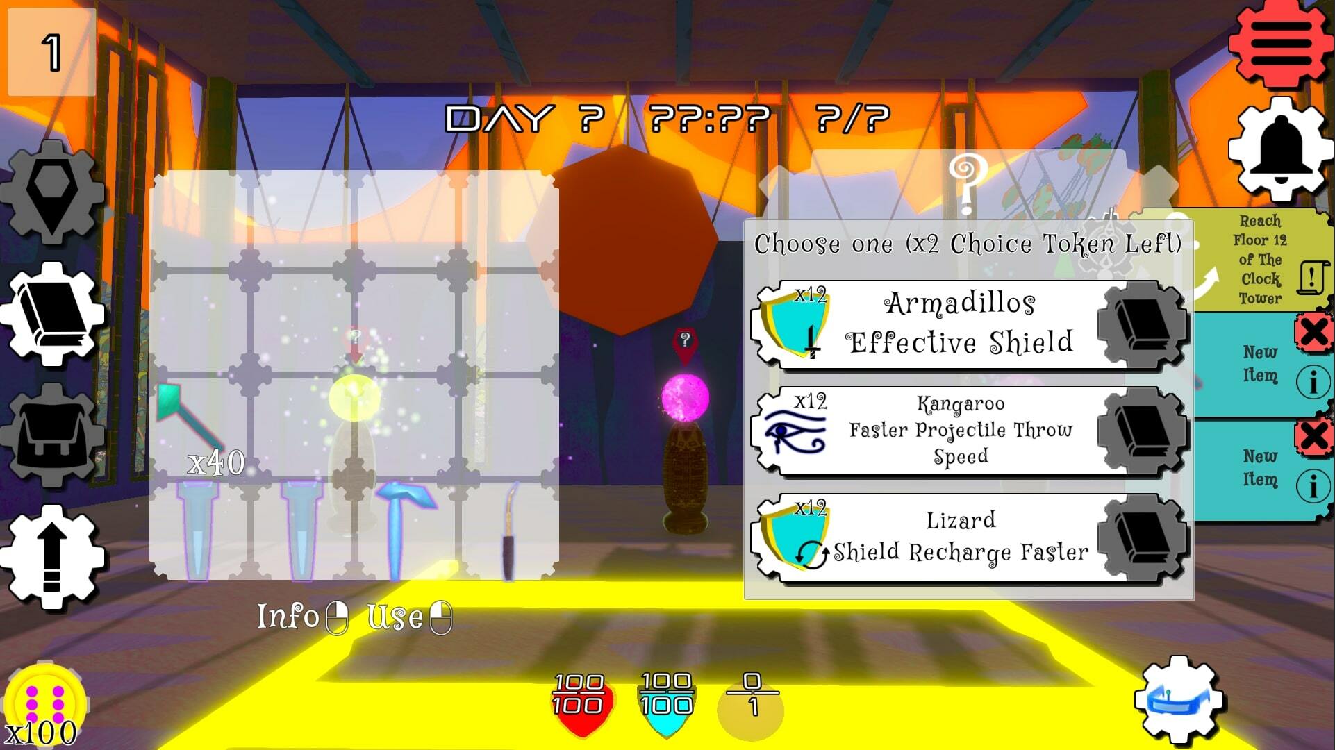 Climb the 12 floors, Items and upgrades will be offered each floor