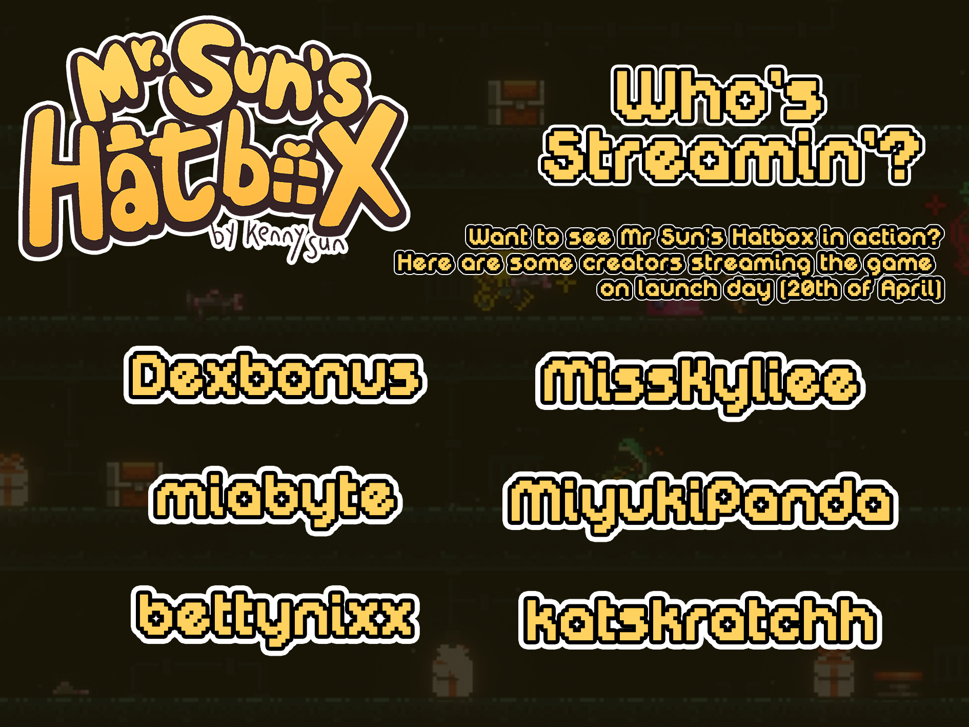 We're so excited to hear your thoughts on Mr Sun's Hatbox, so don't hesitate to leave a review or share your thoughts on the Steam discussions page.