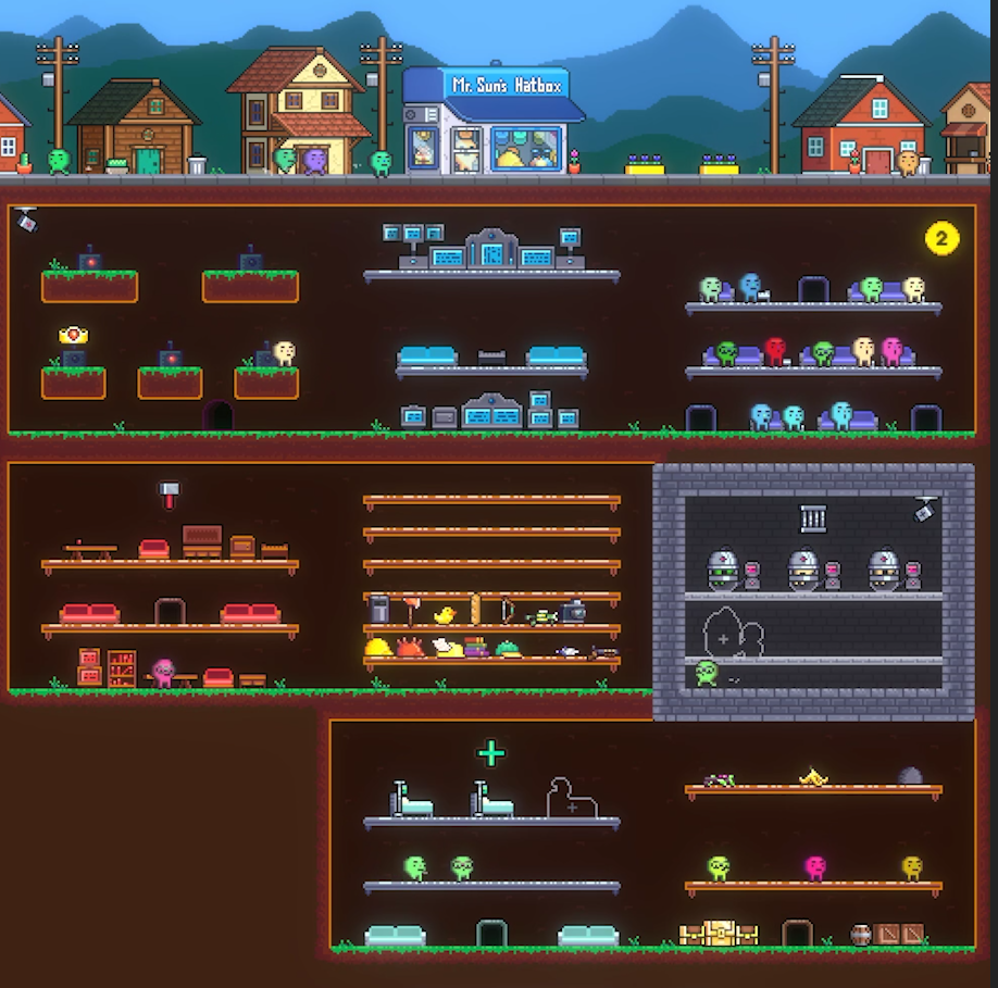 In Mr Sun's Hatbox, you have a base. And there are rooms in this base. And you can build more rooms. Rooms that you also use. Here are a few of the rooms. (How many times can I write rooms before it looks weird?)