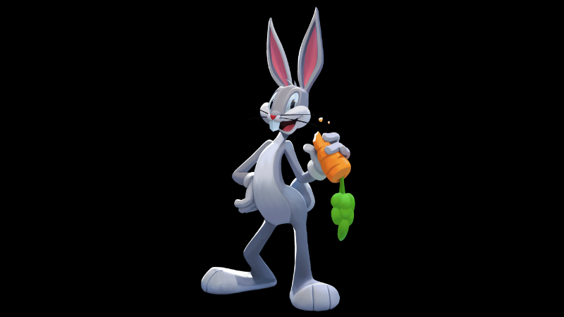 DESCRIPTION: One of pop culture’s most enduring icons, Bugs is a movie star, action hero, and sports legend with a career spanning over half a century. With plenty of Multiverse experience under his belt and a long history of team-ups, Bugs is arguably one of the least-fazed fighters in the face of this multiversal mayhem. He’s humble about it, but this smart aleck rabbit has been yukking it up on screens small and large since before most of these other fighters could walk. Armed with his wits and a few ACME-brand accessories, he’s ready to let loose the looniness.