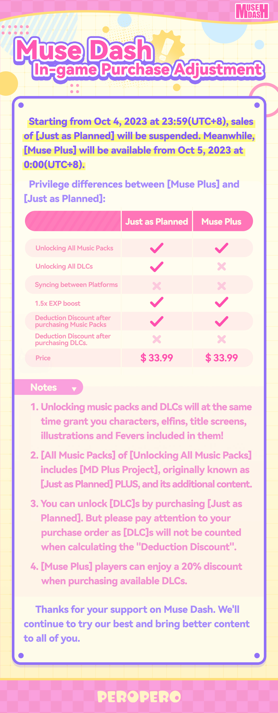 Hatsune Miku collab DLC [Miku in Museland] is available! Unlocking this DLC grants you 10 collab songs, 1 brand-new title screen, 4 illustrations, and the collab-themed Fever BG (ゝ∀・)☆
