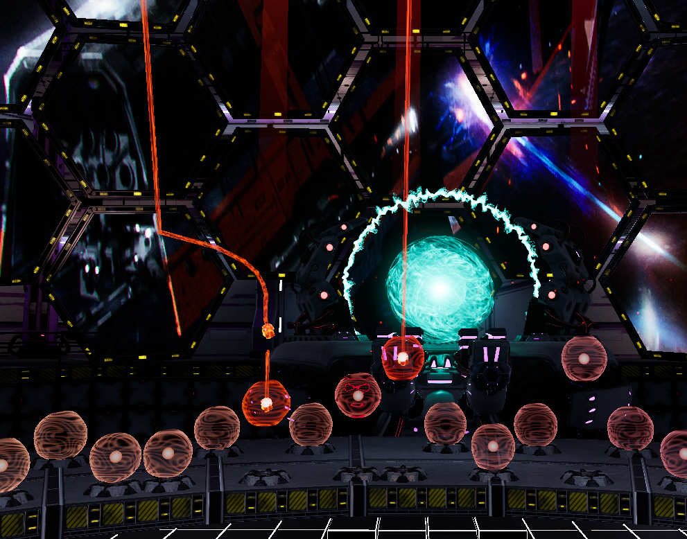 Let's fix the static hands, 1st idea: We designed a bomb that would come out and you'll have to grab it like a lasso and fling it to one of the hexagons on the background, which will result in a big musical explosion. It worked well for moving the arms and felt unique but...