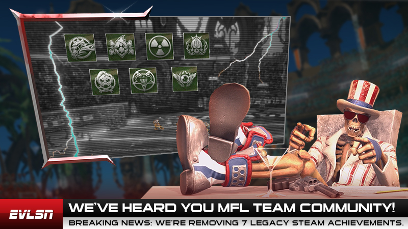 Since our game's initial release back in 2017, we’ve kept these 7 achievements to honor those who achieved them. However, times change, and so do games. With the release of Dynasty Edition in 2018, we made significant updates, including the unlocking of all parody teams - a feature requested by the passionate MFL Steam community. While these achievements have remained in the game, they have lost relevance since they cannot be achieved, and many members of our vibrant community have expressed their desire for their removal - since it is not possible for them to complete all the achievements 100%. This sentiment is not limited to a small group; it represents the majority of players who now outnumber those early achievers. We understand that change can be challenging, and no matter what direction we take, some members of our community may be disappointed. For this, we sincerely apologize. Our aim is to ensure that Mutant Football League continues to be a welcoming and enjoyable experience for both new and longtime players. That's why we've made the decision to remove these achievements, effective immediately after the publication of this announcement. We believe this change will better accommodate the evolving landscape of MFL and provide a fair playing field for everyone. We want to express our heartfelt gratitude to our early players who achieved these milestones. Your dedication has been integral to the growth and success of Mutant Football League. We hope you understand that this decision has been made with the best interests of the entire community in mind. As always, we value your feedback and engagement. Please feel free to reach out if you have any questions or concerns. We are committed to making Mutant Football League an even more enjoyable and inclusive experience for all.