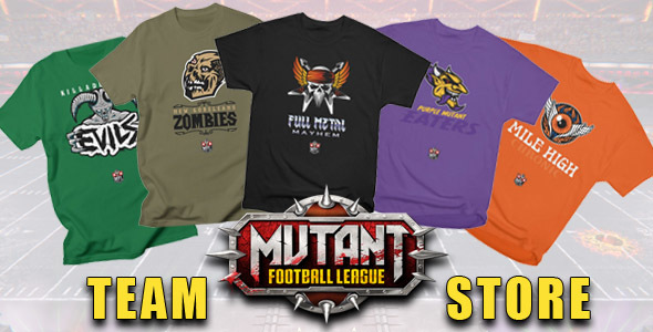 Support your favorite band of carnage-spreading mutant meatbags with t-shirts from the new MFL Team Store! Visit mutantfootball.threadless.com to find your team's colors. Get one for yourself, and that special someone in your gaming circle.