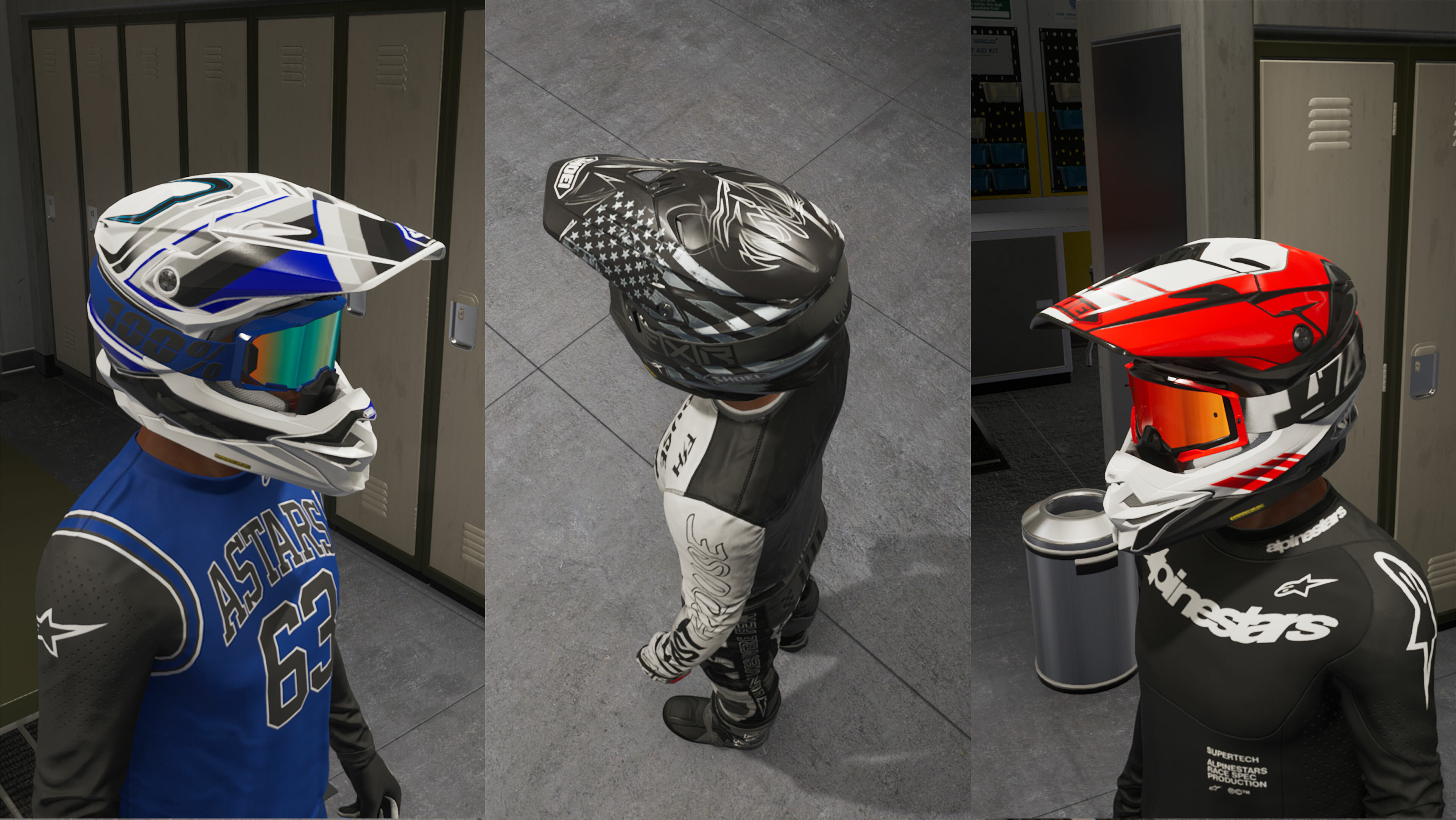 new helmet styles, uniforms and parts in the Garage