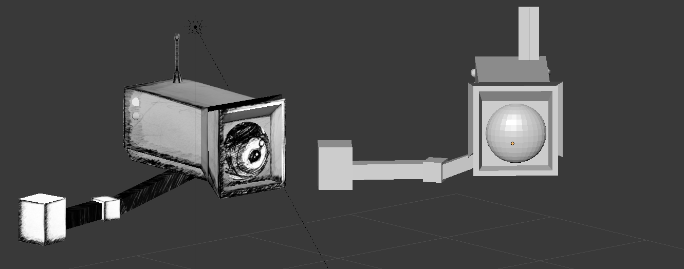 I had started sketching the textures for the game and decided to put them all together to try out some scenes and see how things would look, and while playing around with it, I found that the 3D perspective looked much better. After playing with all my props I had made, I created the first environments, the players holding cell, and the main lobby.