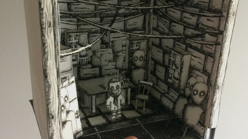 I found myself looking at lots of John Kenn drawings in the early phases of My Beautiful Paper Smile’s development. If you like cool creepy stuff, you need to look him up. There are also a lot of distorted biblical references in the game that give some characters “cult-like” intentions and backgrounds. I also liked the barebones, rugged feeling of old arcade games, so I was originally going to make MBPS a 2D, top down game. However, when I started putting things together in Unreal, I found that I could mix the 2D and 3D objects to make extremely vivid scenes. This is what spawned the 2.5D perspective I use. Many of the other rugged design decisions like the fixed camera and sound design remain though, giving a healthy blend of modern and retro gaming.