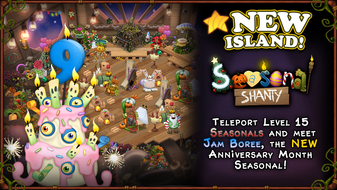 Teleport your Level 15 Seasonal Monsters to the brand new Seasonal Shanty to discover a whimsical new song and the never-before-seen JAM BOREE Monster! Plus, different Seasonal Monsters are going to be available on the main Islands and discounted on the Seasonal Shanty every week!