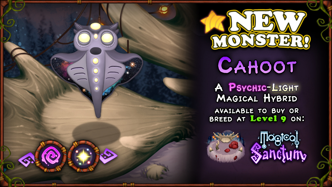A NEW pure Magical Monster has Magically appeared! Buy or breed Cahoot, a Psychic-Light hybrid on Magical Sanctum - and the best part is that it's here to stay!