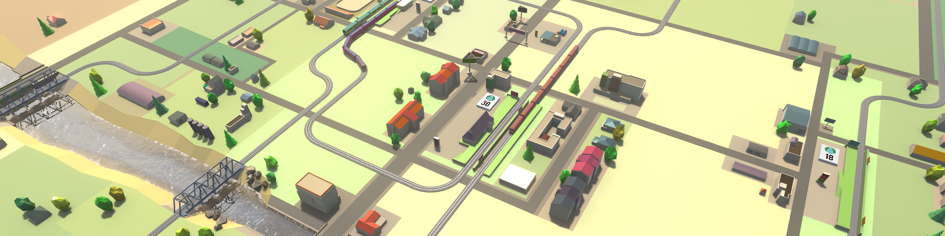 On the map City and Countryside you will be able to develop transport connections between a big oceanfront city and its suburbs. The city has 24 passenger stations and 14 goods stations.