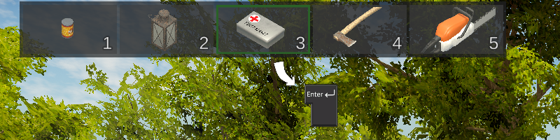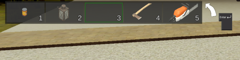Inventory System: Now the player is have a five slots inventory what you can use on every item what not too big like a tractor wheel.
