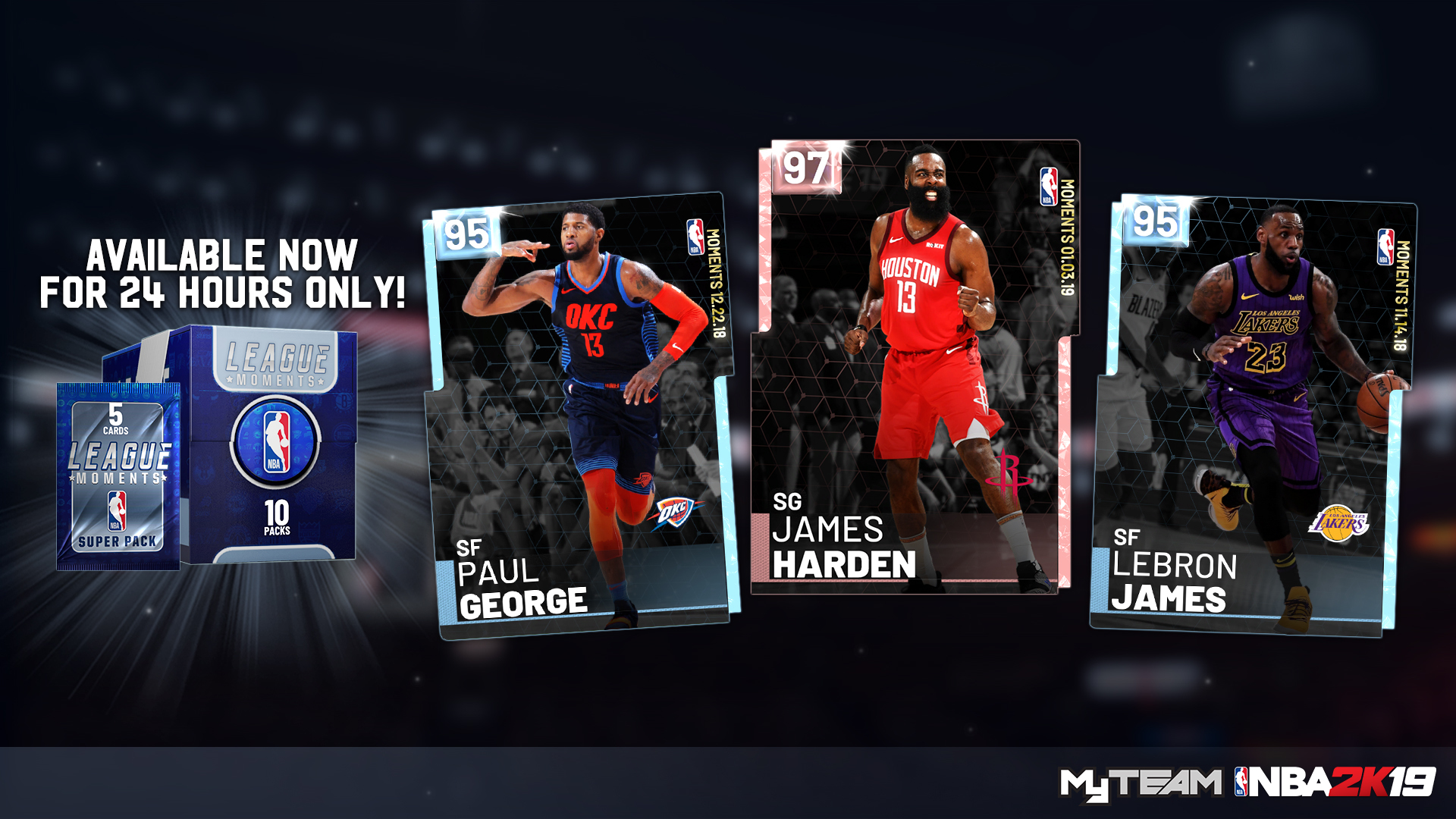 Miss out on some previously released NBA 2K19 Moments cards? Catch up today with limited-time League Moments Super Packs, featuring a chance of pulling a previously released Moments card from earlier in the season. Available for the next 24 hours, so head to the MyTEAM Pack Market now.