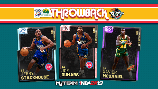 Our latest throwback pack features the green and gold of Seattle's Supersonics, the Bad Boys of Detroit, and OKC's Thunder. Collect Pink Diamond Joe Dumars, Diamond Jerry Stackhouse, and more!