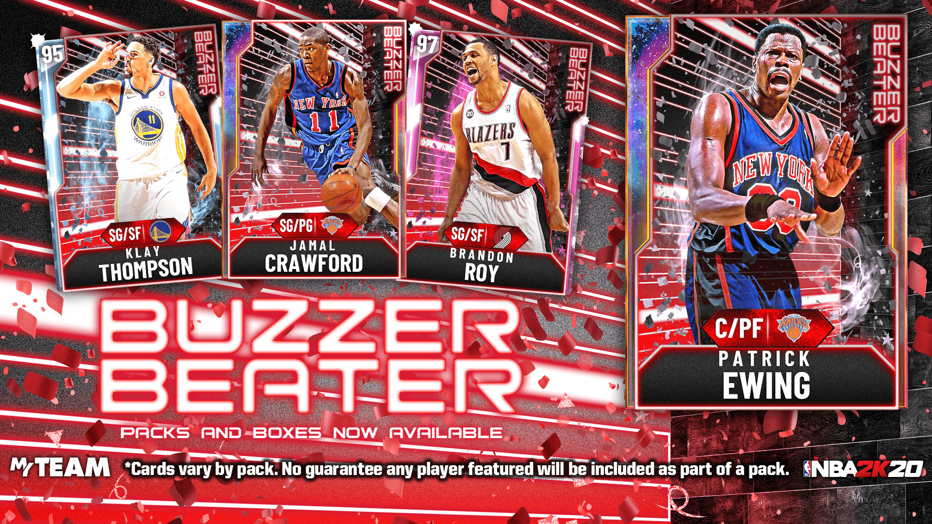 New Buzzer Beater packs are here! This time featuring a Hall of Famer, 3-time 6th Man of the Year, MyTEAM fan favorite and a 3-time champion sharpshooter. Add Galaxy Opal Patrick Ewing & Jamal Crawford, PD B-Roy and Diamond Klay Thompson.