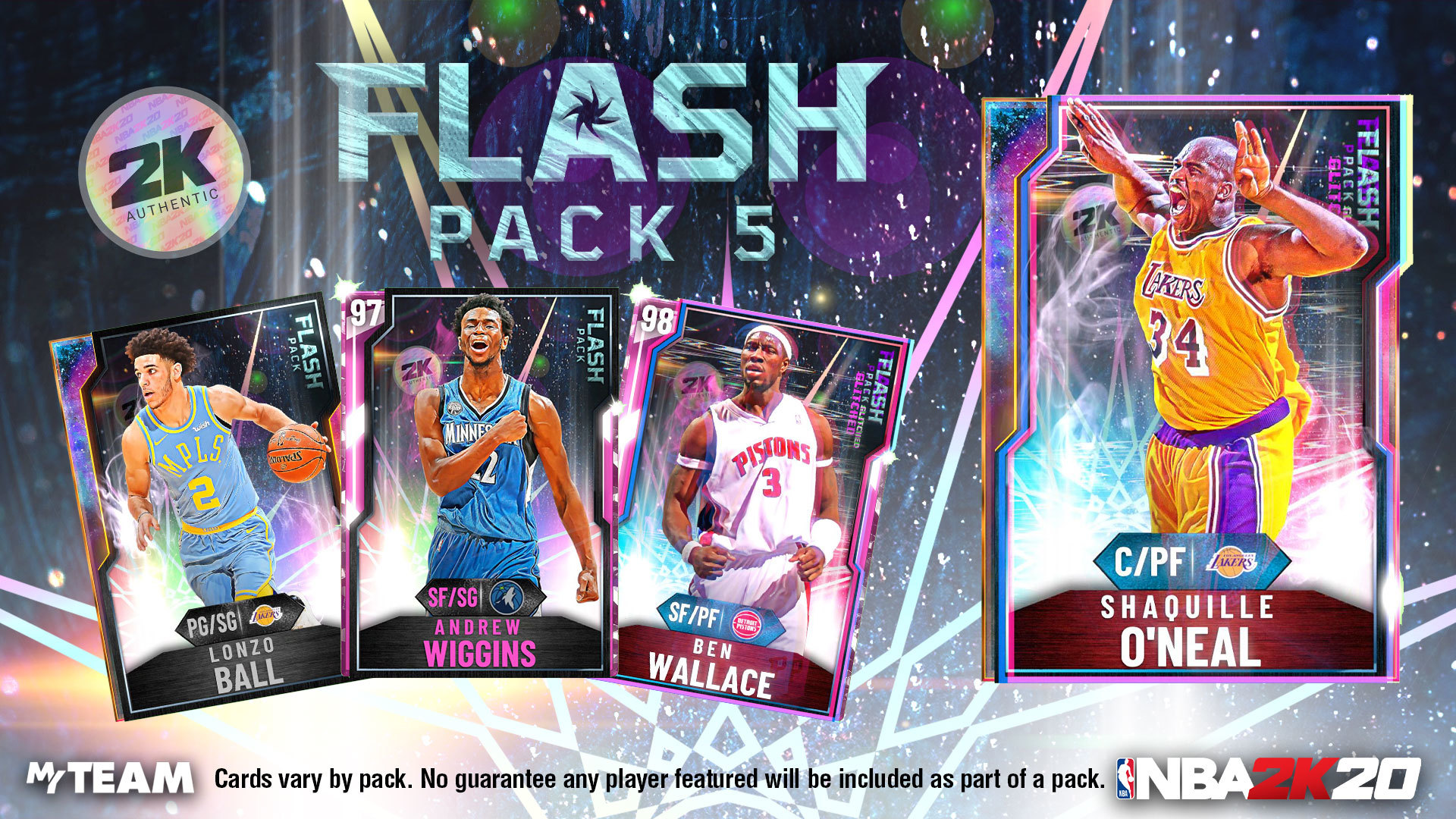 The latest Flash Packs are filled with reinforcements at all positions. Run the point with Galaxy Opal Lonzo Ball, fill the middle with Galaxy Opal Shaq, and add wing scoring with Pink Diamond Andrew Wiggins & Michael Redd.