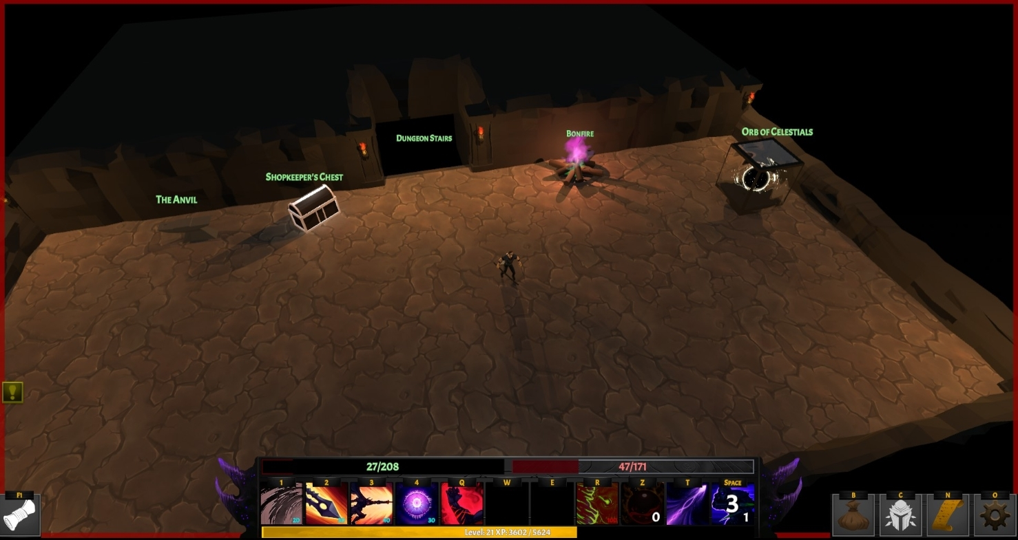 - Increased bank space to 100 - Fixed a bug where if you quit the game with the Bloodlust potion equipped it would show up as Stoneskin on next session - Removed the RMB as a separate ability, basic slash (melee) is now a normal ability once again - Holding the mouse button won't move the player anymore during animations that are supposed to halt player movement - Right Mouse Button is now a possible keybind - Corruption per item upgrade is now +10% (down from +100%) - Using any ability now puts the basic attack cooldown to 0.5 seconds - Abilities can now be cast by clicking on the ability bar with the mouse (targeting doesn't work for now) - Some monsters have armor ratings now, which scales with the floor