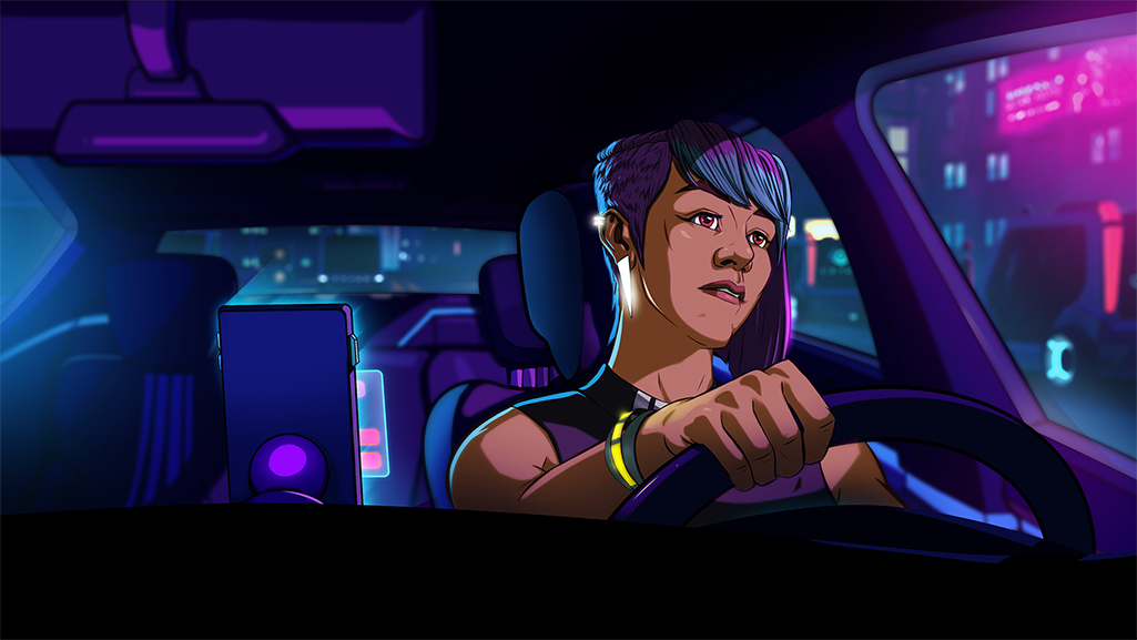 You'll meet many characters as they slid into the backseat of your car. If someone wanted a quiet ride, they'd call one of the automated Capra cars. To compete with the efficiency of the sleek autocar experience, human drivers need to offer something unique: themselves. People call Neo Cab for a connection: hear their stories, learn their secrets, and maybe even make a new friend.
