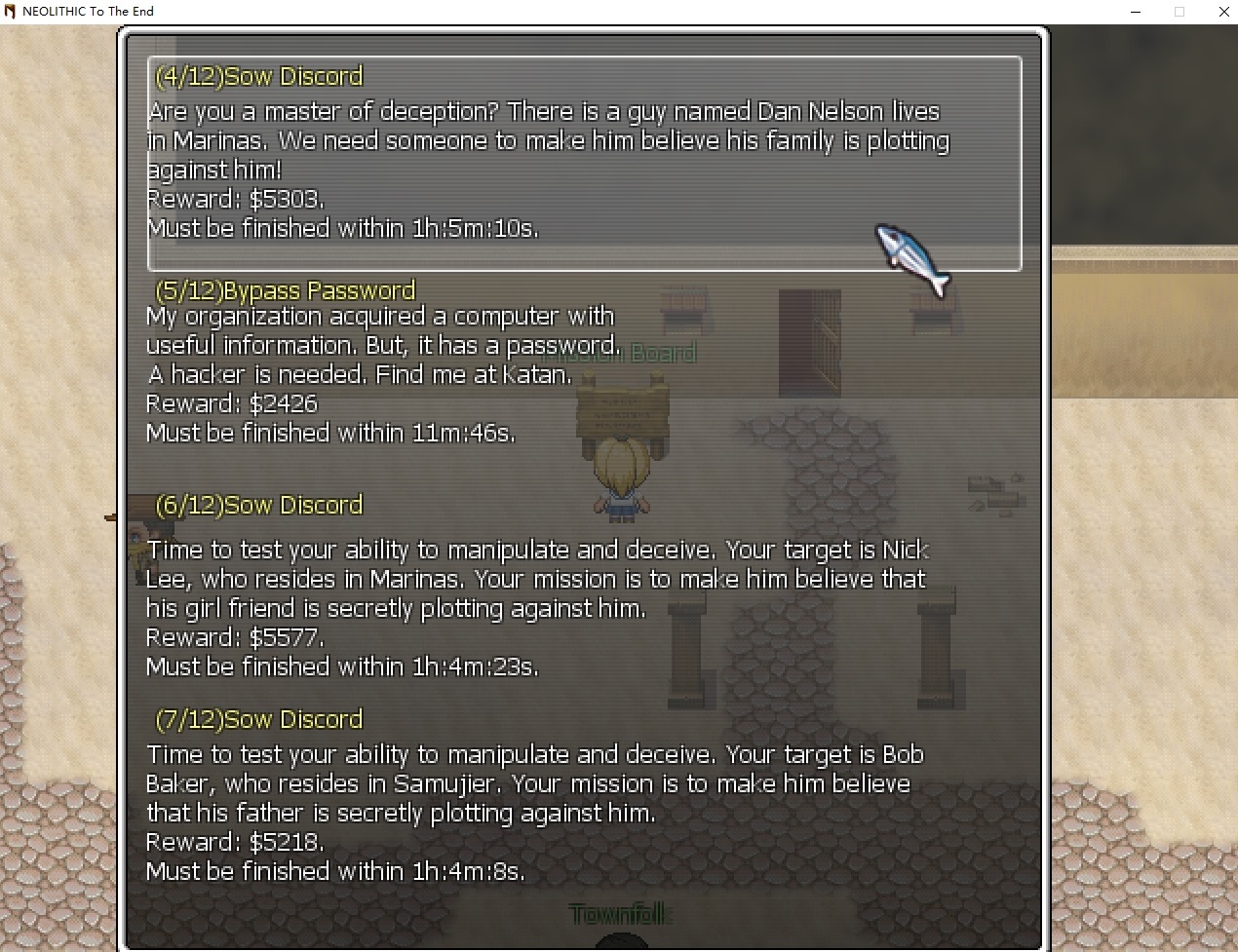 New Mission Board in Katan I’ve introduced a new mission board in Katan, the lawless town. It features old procedurally generated quests requiring you to bypass computer passwords for shady figures, and a new one that requires you to sow discord among victims. There, you can have a lot of opportunities to use your deception skills. Here’s a bit more on this new procedurally generated quest. In many fraud activities, criminals try to sow discord between their target victims and the victim’s close family members and friends to isolate them and make them more vulnerable. For example, if a charlatan wants to sell “health potions” to an elderly victim, it’s common for the victim’s children to voice against purchasing those potions. The charlatan will then try to discredit the children. If successful, the victim distances themselves from their family, becoming more isolated and susceptible to further manipulation. As a lawyer in China, I sometimes see such stories. This quest is based on real-life experiences, aiming to raise awareness, even though you play from the bad guys' perspective in the game.