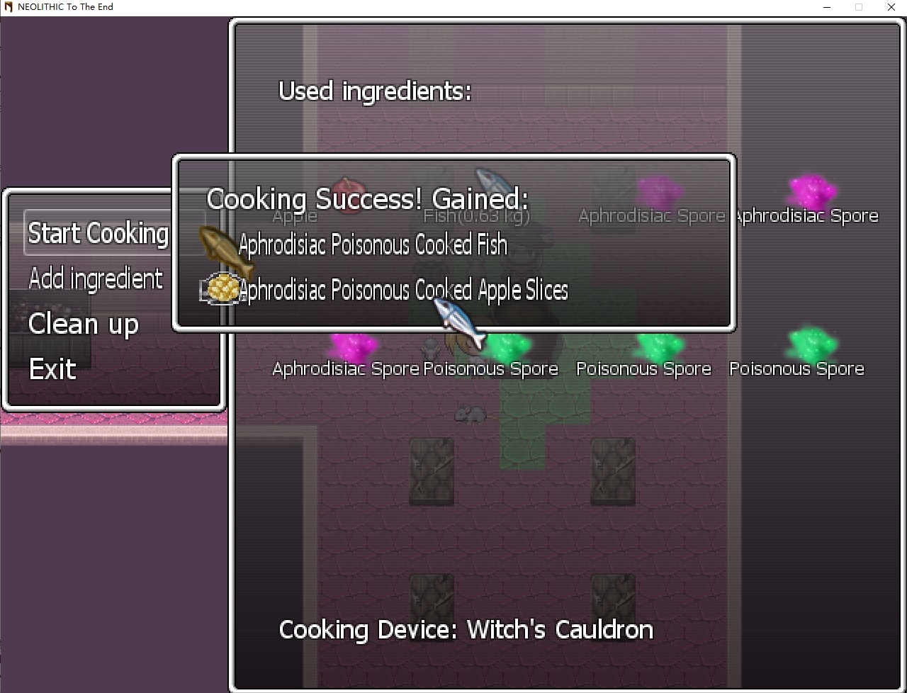 English ############Content############### [Item]New Item/Alchemy Material: Poisonous Spore [Item]New Item/Alchemy Material: Aphrodisiac Spore [Loot]Mushrooms and their infected humans may now drop those spores. [Cooking] Poisonous Spores can now be used as food additives when cooking. (If you are cooking a lot of food, you will need a lot of those additives to take effect. The less food you cook and the more such additives you add, the better the effect modifier. For example: 6 Poisonous Spore + 1 Apple can get you a cooked apple with a high poisonous modifier while 6 Poisonous Spore + 2 Apples may give you 2 cooked apples with only half of that modifier.) [Cooking] Aphrodisiac Spores can now be used as food additives when cooking. [Wiki]The cooking and alchemy effects of those spores have been updated to the Wiki. [Wonderland Travel Agency]Procedurally generated caves with mushroom enemies may now have Aphrodisiac Mushrooms. [Shopping]Enchantopia Elegance Emporium and the Mage Guild now sell Poisonous Spore. #######System################## Added a new function to standardize the effect of food additives during the cooking process. 简体中文 ##########Content################# 【物品】新物品/炼金材料:剧毒孢子 【物品】新物品/炼金材料:催情孢子 【掉落物】蘑菇以及被它们感染的人类现在可能掉落这些孢子。 【料理】剧毒孢子现在可以作为食品添加剂。(如果你同时料理很多的食物,你可能需要加入很多的此类食品添加剂来产生效果。而如果你只料理很少的食物,但是加入了很多这类添加剂,那么可以造成较高的效果修正值。 比如,你用1份苹果和6份剧毒孢子,可以料理出有较高修正的有毒的苹果。但是,如果你用2份苹果和6份剧毒孢子,那么可能得到的是2份修正值是前者一半的有毒的苹果) 【料理】催情孢子现在可以作为食品添加剂。 【维基】在维基的料理和炼金页面加入了上面这些孢子的信息。 【奇幻之地旅行社】过程生成的有蘑菇敌人的洞穴中,现在会出现催情菇。 【购物】优雅吟唱者秘法店和法师公会现在贩卖剧毒孢子。 #######System################## 加入了一个新的函数来标准化料理过程中的食品添加剂效果。