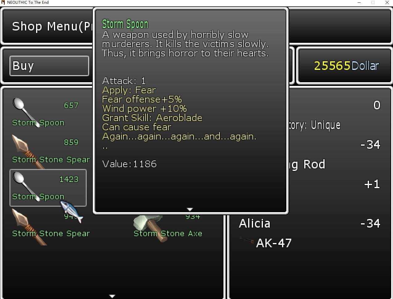 20231127 English ############Content################ [Localization]Moved item prefixes to their own localization file. [Prefix]New Prefix: Storm [Hottle]New Location: Hottle Equipment Store [Butterfly]Once you visit the Hottle Equipment Store, you can teleport there. [Hottle Equipment Store]Added a weapon merchant who sells weapons with the "storm" prefixes. (Weapon types are random.) [Hottle Equipment Store]Added a dialog option on the weapon merchant about the source of those weapons. [Hottle Equipment Store]Added smelters and magic aveils. [3D Printing]Crafted Stone Axes now have their attributions scaled with your 3D modeling skills. [3D Printing]Crafted Stone Spears now have their attributions scaled with your 3D modeling skills. [3D Printing]Crafted Bone Spears now have their attributions scaled with your 3D modeling skills. [3D Printing]Crafted Daggers now have their attributions scaled with your 3D modeling skills. [3D Printing]Reorganized the sword's item generation code. It's now an OIG item with an independent item generation code instead of attached to a crafting script. #############System################ Added a new module to manage the 3D modeling level's crafting effects. 简体中文 ############Content################ 【本地化】将物品词缀移动到了它们自己的文件内。 【词缀】新词缀:风暴 【霍特尔】新地点:霍特尔装备店 【蝴蝶】蝴蝶之翼可以在你首次访问霍特尔装备店后让你传送到那里。 【霍特尔装备店】加入了一个武器商人,贩卖有风暴词缀的武器。(武器种类随机) 【霍特尔装备店】在武器商人身上加入了对话选项关于武器的来源。 【霍特尔装备店】加入了熔炉和魔法铁毡。 【3D打印】制造的石斧的属性现在会随你的3D建模能力变化。 【3D打印】制造的石矛的属性现在会随你的3D建模能力变化。 【3D打印】制造的骨矛的属性现在会随你的3D建模能力变化。 【3D打印】制造的匕首的属性现在会随你的3D建模能力变化。 【3D打印】调整了剑的代码生成结构。现在它是一种有独立生成代码的OIG物品,生成代码不再附着在一段物品铸造代码上。 #############System################ 加入了一个程序模块来管理3D建模技能在打印物品时的一些基本操作。