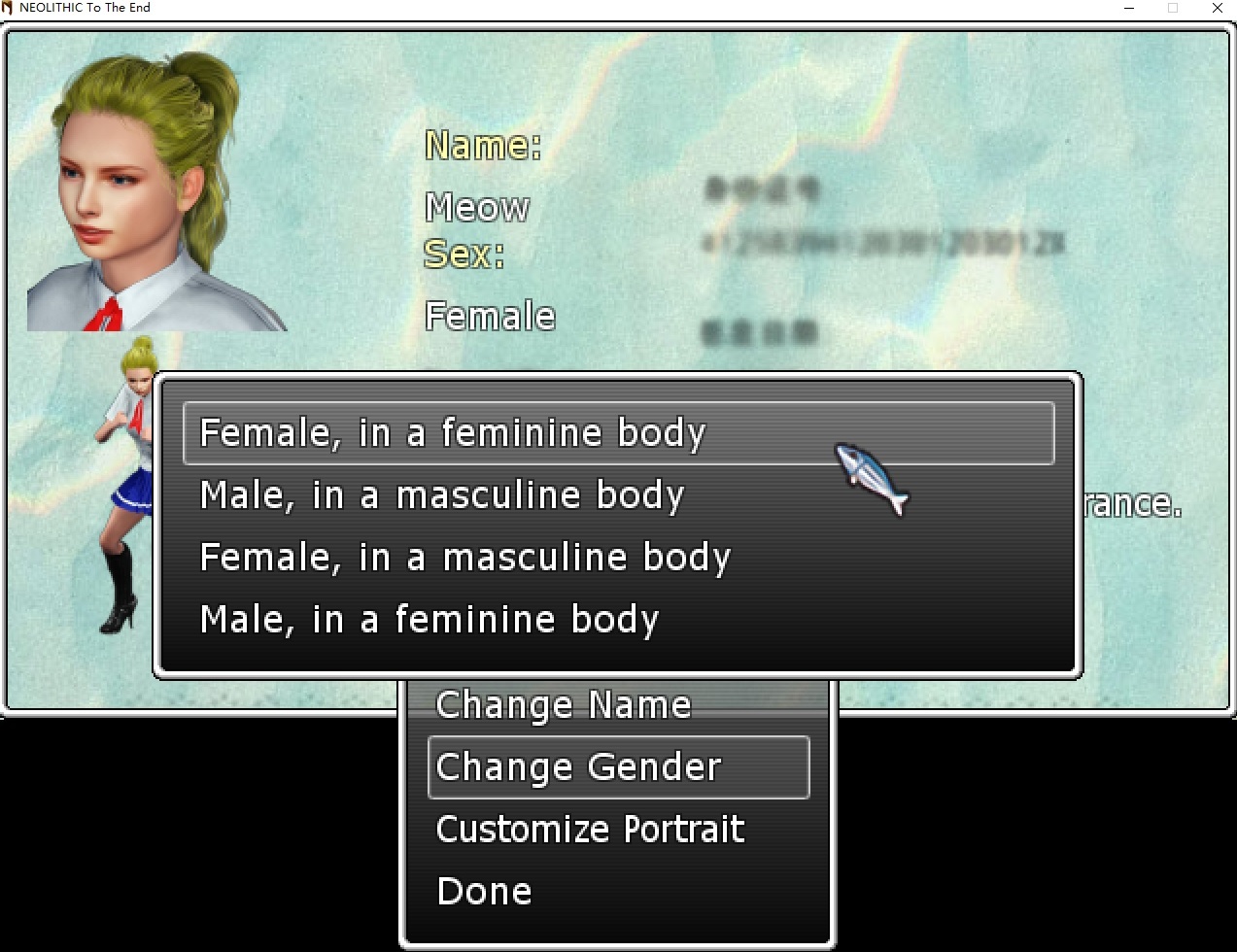 English ############Content################ [Character Customization]Increased the gender types from 2 to 4. You can now play as a female in a masculine body or a male in a feminine body. [Character Customization]You can use those new gender types on your main character and your customized teammates. [Character Customization]Most of the NPCs will pronounce you based on the gender you chose instead of the appearance you chose. [Character Customization]For romance calculation, most of the NPCs' sexual orientation calculation is also based on your chosen gender instead of your appearance. (For example, Kristin.) [Character Customization]The gender you chose will now appear on your passport and the character menu, overriding your appearance. [Weapon]New Weapon Type: Fluorescent Lamp Saber (Requested by 吉尔伽美什.) [Bazaar]The Weapon Merchant now sells those Fluorescent Lamp Sabers. (No prefixes) [Bazaar]Removed some less useful weapons from the Weapon Merchant's inventory. [Loot]The following enemies may now have a small chance to drop Fluorescent Lamp Sabers: Businessmen, Mercenaries, The Possessed, Hentai Exhibitionists, Crazed Survivors, and Vampiric Researchers. (Their shaded versions drop the shaded version of sabers.) [Loot]Those Fluorescent Lamp Sabers from enemy drops may have prefixes. #############System################ Updated all code to allow the use of new gender types. Optimized a gender check in the Window_EquipItem class to directly call the function on the characters themselves. 简体中文 ############Content################ 【角色自定义】增加了性别的种类从两种到四种。你现在可以玩一个有男性身体的女性,或者一个有女性身体的男性。 【角色自定义】你可以对你的主角或者自定义队友使用这些新的性别种类。 【角色自定义】大部分的NPC会用你选定的性别来称呼你,而不是你选定的外观。 【角色自定义】对于感情发展的计算上,现在大部分的NPC进行对你的性取向的计算时,使用的是你选择的性别而非你的外观性别。(比如,克莉丝汀.) 【角色自定义】你选择的性别会在你的护照和角色界面上显示,并且重载掉外观所带来的性别。 【武器】新武器类型:荧光灯管剑。(吉尔伽美什提议加入的武器。) 【巴扎】武器商人现在会贩卖荧光灯管剑。(没有词缀) 【巴扎】武器商人现在不会贩卖某些基本没什么用的武器了。 【掉落物】以下敌人现在可能掉落荧光灯管剑:商人,佣兵,被附体之人,变态暴露狂,发狂的幸存者,吸血鬼研究员。(他们的暗影版本会掉落暗影版本的剑。) 【掉落物】以上从敌人身上掉落的荧光灯管剑可能有词缀。 #############System################ 升级了所有相关的程序代码来允许使用新的性别。 优化了Window_EquipItem类中的一处判别性别的函数,现在直接调用角色身上的函数。