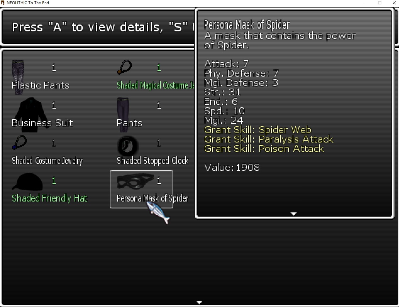 English ############Content############## [Persona Masks]Dr. Kyofu can now create persona masks from your pets. [Persona Masks]Alicia's relationship will drop if she is in your group when you let Dr. Kyofu make a persona mask. [Persona Masks]Added a document in Dr. Kyofu's lab: Dr. Kyofu's Research on Persona [Wiki]Added a wiki page about the persona masks: https://neolithia.fandom.com/wiki/Persona_Masks 简体中文 ############Content############## 【人格面具】恐怖博士现在可以用你的宠物制造人格面具。 【人格面具】如果你在让恐怖博士制造人格面具的时候艾丽西亚在队伍里,那么会降低关系度。 【人格面具】在恐怖博士的实验室里加入了一份文档《恐怖博士的人格面具研究》 【维基】加入了一个关于人格面具的维基页面:https://neolithia.fandom.com/wiki/Persona_Masks