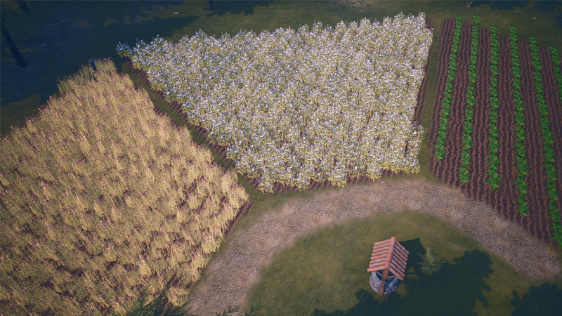 Field crops: Field crops have been adjusted to suit the new field building system. Added wind effect to grape leaves.
