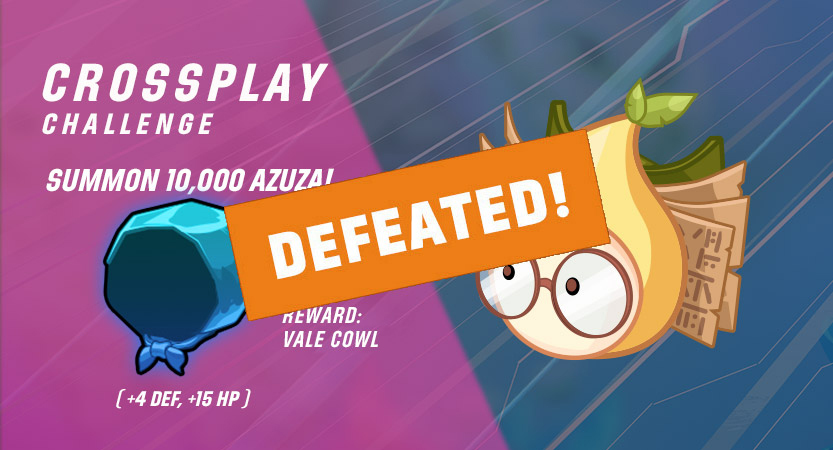 For this challenge, we want to show you the power of invincibility, so we’re requesting that as a community y’all summon 10,000 Azuza. The reward? Vale’s Cowl, a defensive item for one of our most dangerous assassins.
