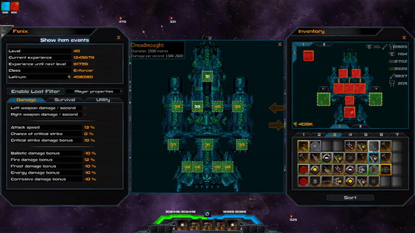 🎯 [Drone Properties] Summoned drones can now be buffed by passive bonuses in the same way as players. Each item has a likelihood to roll properties that passively affect drones. 🎯 [Ship Turret Properties] On-board ship turrets can now be buffed by passive bonuses in the same way as players. Each item has a likelihood to roll properties that passively affect ship turrets. 🎯 [UI] Item tooltips now describe drone and ship turret passive buffs. These are included in their calculated DPS and Hull in tooltips. 🎯 [UI] The character stat sheet now also describes all drone and ship turret properties properties. Loot filter options are available as well. 🎯 [Weapon] A new Vagrantis weapon called "Guided Destroyer" has been added. It shoots heavy homing rockets with large area of effect. 🎯 [Passive Auxiliary Item] The Drone Damage Multiplier has been added. It works the same as the Damage Multiplier, but for drones and on-board turrets. 🎯 [Passive Auxiliary Item] The Drone Resistance Multiplier has been added. It works the same as the Resistance Multiplier, but for drones and on-board turrets. 🎯 [Passive Auxiliary Item] The Drone Hull Module T-1 has been added. It increases max hull of drones by a percentage. 🎯 [Continuum Transmuter] The "To-1 Fragment" has been added. It allow converting all drone and ship turret bonuses to player bonuses on an item. 🎯 [Continuum Transmuter] The "To-2 Fragment" has been added. It allow converting all drone and player bonuses to ship turret bonuses on an item. 🎯 [Continuum Transmuter] The "To-3 Fragment" has been added. It allow converting all player and ship turret bonuses to drone bonuses on an item. 🎯 [Balancing] The base crit multiplier value is now 10% (up from 0%). 🎯 [Balancing] The health of Deflector Domes summoned by the Deflector Dome Active Auxiliary item has been increased by 30%. 🎯 [Balancing] The damage of the Worm Hugger summon has been significantly increased. 🎯 [Balancing] Maximum negative resistance is now -100% (up from -500%). Maximum positive resistance is now 75% (down from 80%). 🎯 [Balancing] Drones now also get reduced resistance when playing on Continuum Mode. 🎯 [Balancing] The Xinthu talent "Drone Damage Mastery" [7:5] now provides a 80% bonus (up from 10%). 🎯 [Balancing] Drones have 50% less hull and do 40% less damage. Drones at lower levels (< 8) are less affected by this nerf. This change was made to compensate for the fact that drones now have their own customizable properties. 🎯 [Balancing] Ship turrets do 30% less damage. Ships at lower levels (< 8) are less affected by this nerf. This change was made to compensate for the fact that ship turrets now have their own customizeable properties. 🎯 [Balancing] Two Vagrantis Homing-type weapons have been disabled from use as ship turrets. 🎯 [Misc] There Hammerhead-type bosses in the "Void Space A-2" Continuum Event have been replaced by Battleship-type bosses. 🎯 [Misc] Weapon feedback has been reduced. 🎯 [Misc] NPCs in rescue NPC-events have increased hull. 🎯 [Bug fix] There was a possible race condition in the player saving/loading system, which could cause incorrectly loaded inventories if starting a new game quickly after closing one. This is now fixed. 🎯 [Bug fix] Fixed an issue regarding a skill that was incorrectly reset.