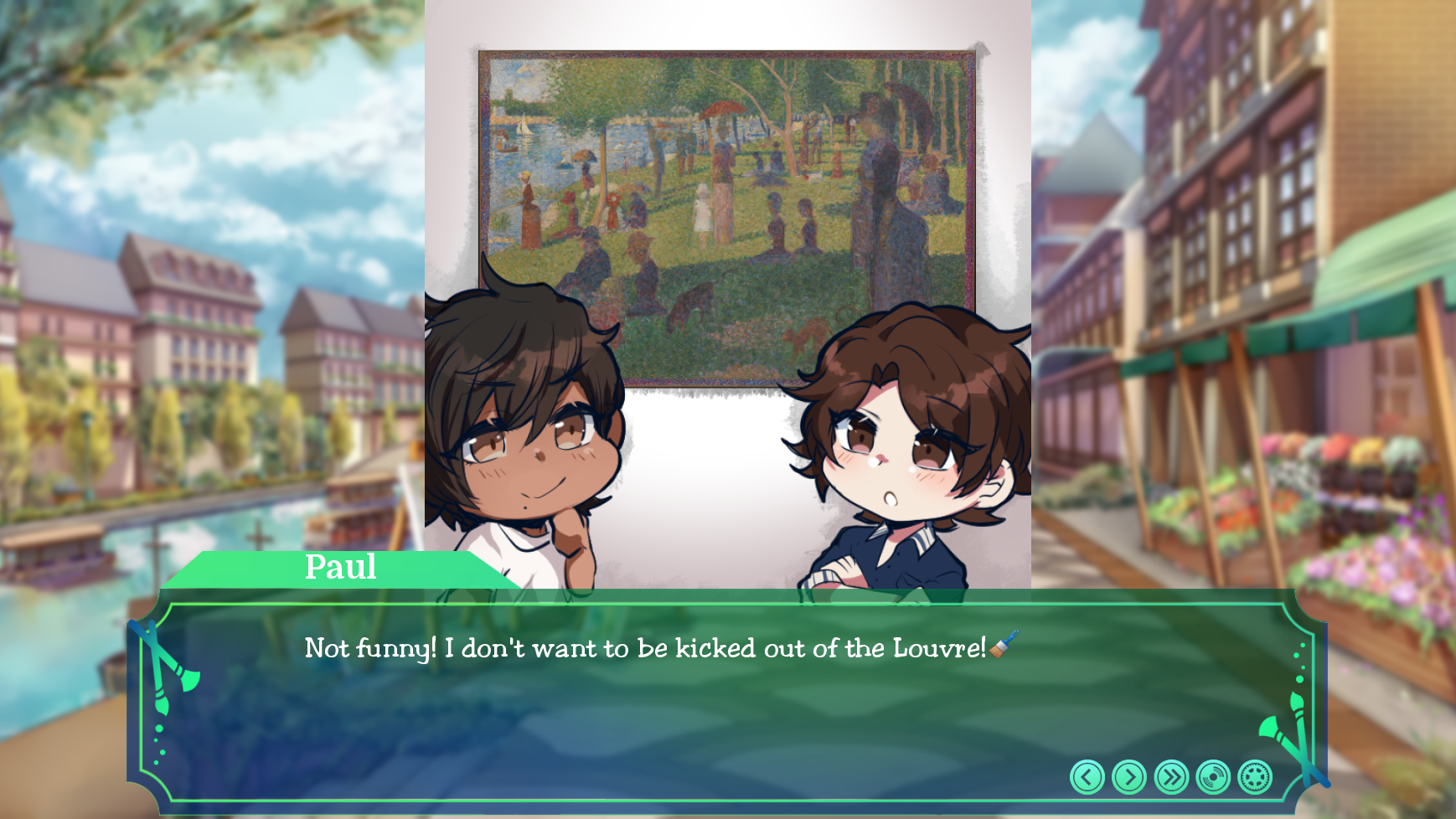 Enjoy Paul's adventures in 1950s Paris, as he meets fellow dreamers trying to make a name for themselves as painters, writers, or jazz musicians! Will he get more attached to the Haitian serious jazz club barista, the cheeky Romani guitar player, his disenchanted but well-established art teacher, or the moody wannabe-writer/ art model? It's up to you!