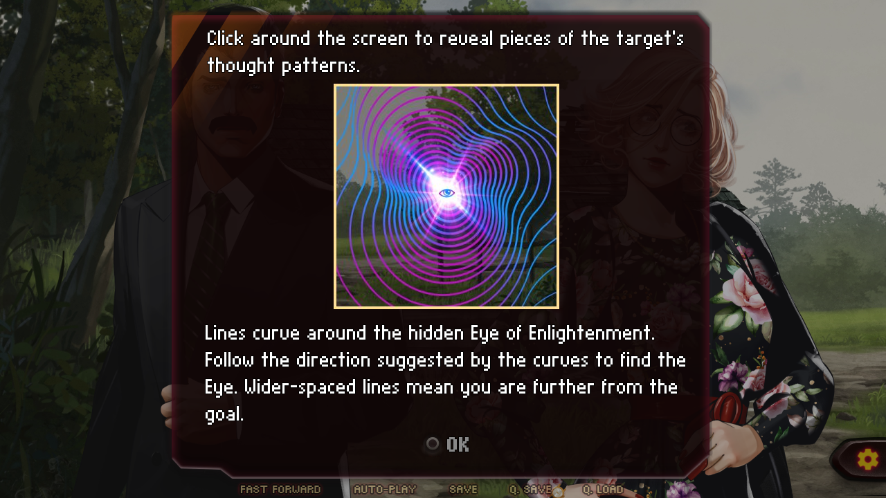 Hopefully this will make it more understandable for future players if they can see how to guess which direction to look for the Eye based on the curving lines. Wherever you click, you SHOULD get some clues that help you tell whether you're close or not and which way you should look next.