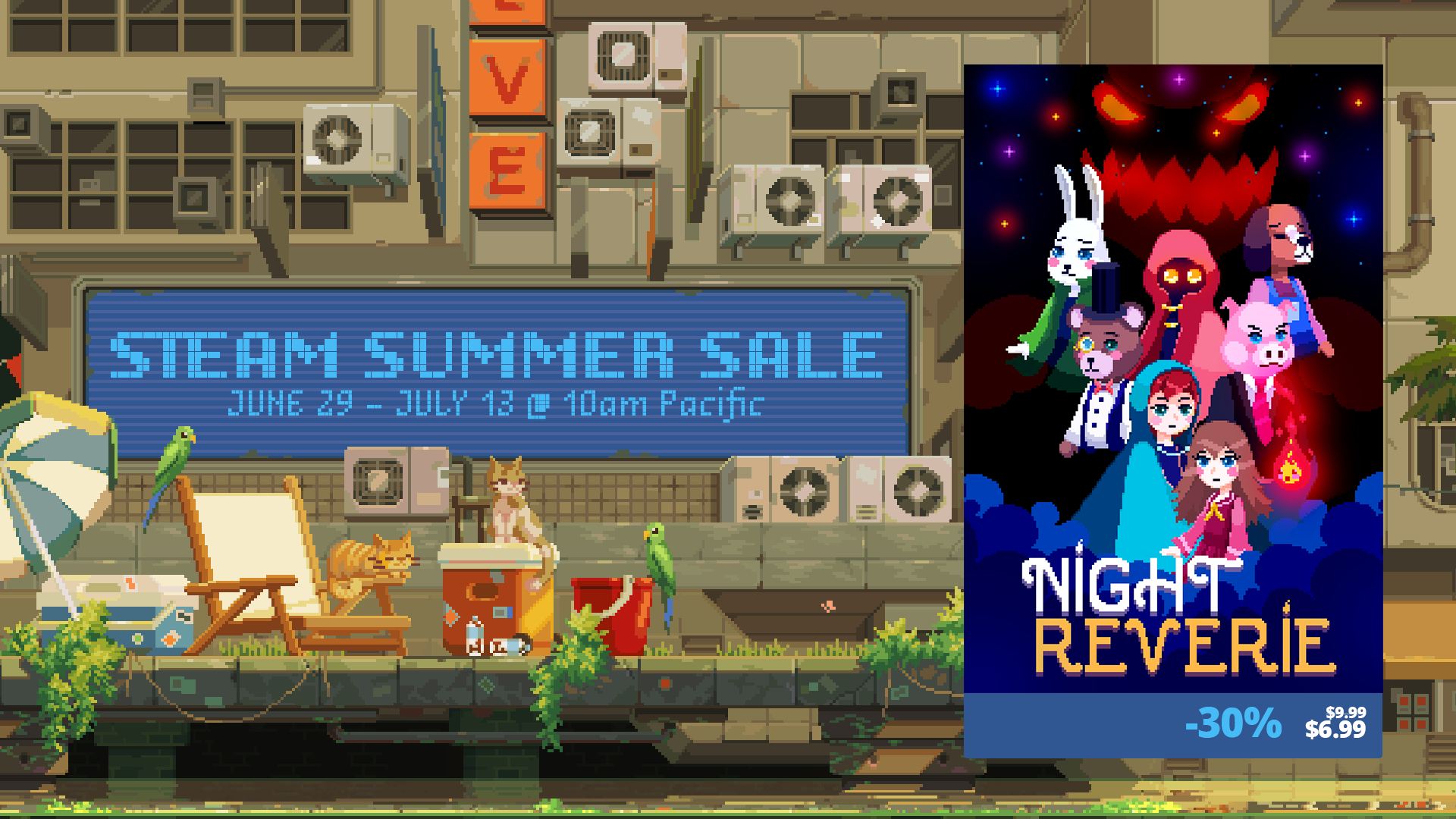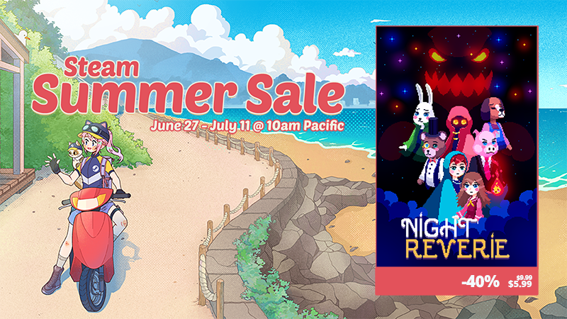 Night Reverie has a 30% discount until July 13! If you haven't played the game yet or you want to get it for a friend, this is the perfect moment to do so!