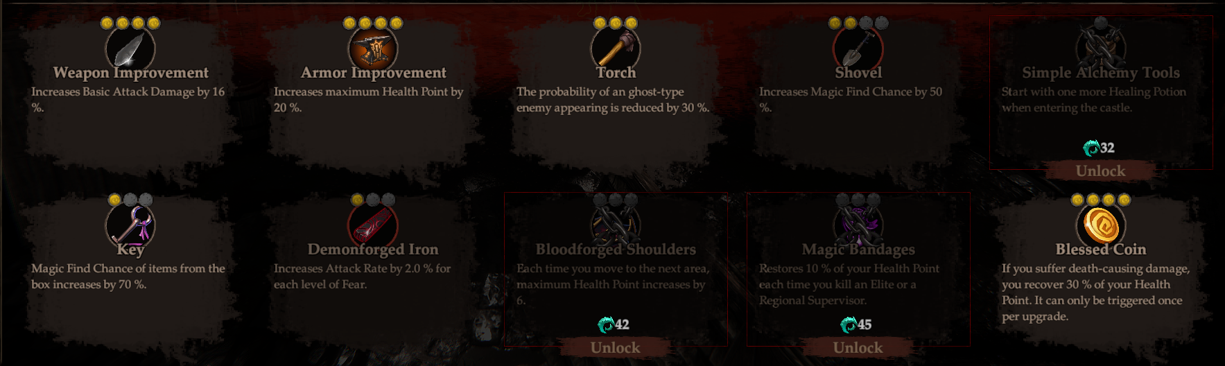The blacksmith's research has now been changed to be can upgraded several times. Initial performance is lower than before, but on average, two or more upgrades will result in the same or higher performance as before. If the upgrade is complete, the game will be much easy than before.