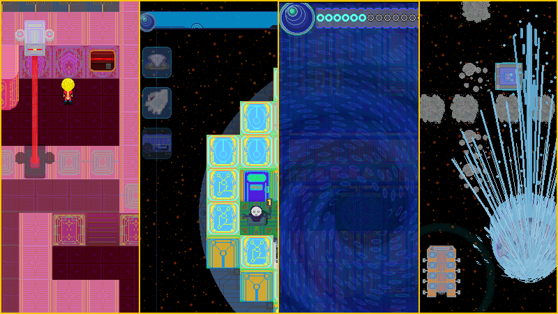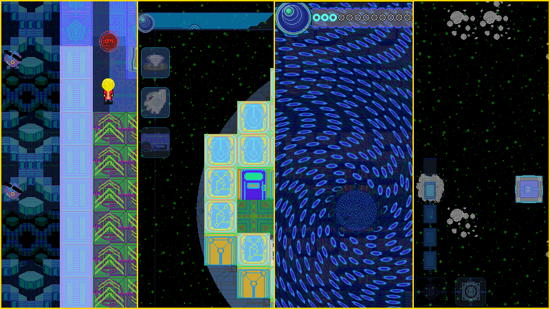 *New Functions and Mechanics: 1. Added a new Item that allows players to record Action Points usage so it can skip the day per day setting before an exploration: The Push-Card. 2. Added a new little racing Minigame. 3. Added a Bonus Loot with a HUD. Collecting all loot in a given cargo starship will give you an extra item or items. 4. Added a new upgrade for the metal disintegrator. 5. The cargo starship debris had a sprite redesign with more variations and difficulty. 6. Add a rare item: The Energetic Key to refill the pulsating energy in a single hit. 7. Added a merchant that can change the color of your starship, the default blue, red, green, magenta or teal. 8. Added a speed layer at the end of each level to collect faster the last two items. 9. Added a teleporter to make Action Points organization per day faster. Unlocked automatically during the progress of the game. 10. Added a teleporter switch at the end of each abandoned cargo starship. It requires a Positronic key to charge.
