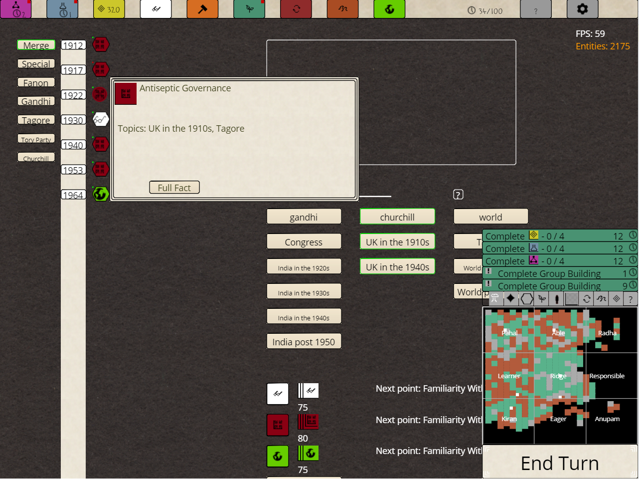 There are lots of small fixes in this one. I've updated a lot of text to be clearer for new players and added more tutorial tips around the game. I've also added quite a few facts on Churchill, so playing that route should be much easier now. I reduced the bonus that a city gets from a camp by a small amount. I'm probably going to put in some more tweaks there soon. I also fixed a number of small crashes around the game.