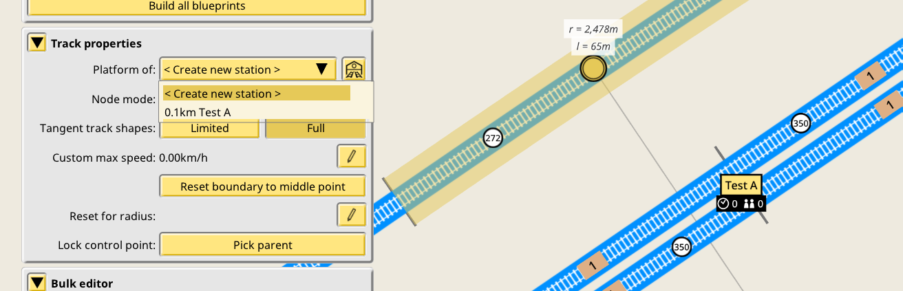 - New keybind (unassigned by default) to promote the current track selection to a new station. Combine with Shift to instead assign the tracks as platforms of the nearest station. Combine with Alt to instead demote platforms into normal track. - Fix: pasting stations in the clipboard with Ctrl-Shift-V sometimes did not properly register as a new station and the station nameplate did not show up (cosmetic issue) - Fix: straight guide disappears on zoom in when track node is offscreen - Fix: changing building type of selected building must reset its decal